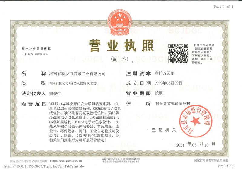 河南省新鄉市啟東工業有限公司始建于1987年,是專注研發、生產自動化儀器儀表(主要與壓力容器、鍋爐等容器配套使用)的廠家。主要產品有液位計(磁敏雙色型、磁翻柱型等)系列、烤包器熄火聯控裝置系列、壓力容器快開門安全聯鎖保護裝置系列、鍋爐報警器系列。二十多年來,公司產品暢銷國內并遠銷俄羅斯、蒙古與東南亞,深得廣大用戶的信賴和好評。我們多年來致力于自動化儀器儀表的研制生產,公司現具有完善的生產、試驗、檢測手段和設備??萍紕撔?、誠信服務,是我們不變的經營理念,我們將以強有力的技術支持及售后竭誠為客戶提供良好的服務。  2012年我公司成功研發了KCL系列烤包器熄火聯控裝置,并于2013年2月2日榮獲中華人民共和國國家知識產權局辦法的《實用新型**證書》<**號:2021202257735>該產品廣泛應用于唐鋼等大型鋼鐵企業,為烤包器安全作業提供了有力的保障?! ?002年我公司成功研發磁敏電子雙色液位計獨特的高亮度LED紅綠雙色顯示,獲得了專家的首肯和用戶的一致好評。在此基礎上我公司研發人員十年磨一劍,致力于XQFB-1防爆型磁敏雙色液位計的研發,于2013年12月27日由國家防爆電器產品質量監督檢驗中心檢驗合格并頒發防爆合格證書<編號:cnex19.0883>。該產品性能得到了充分的發揮,廣泛應用于含有Ⅱ類A·B級T1-T4組可燃氣體或蒸汽與空氣混合形成的爆炸性混合物的0區、1區危險場所。連接用戶DCS或PLC系統實現遠距離集中顯示和控制,從而實現節能、數字化管理。為用戶增加了一定的經濟效益和社會效益,。2014年公司成功申請了夢潤儀表的logo,新的品牌新的形象,夢潤儀表是啟東的LOGO, 歡迎新老用戶前來洽談合作。  我們一如既往地注重科研的投入,憑借產品的不斷更新、加大科技含量,進一步拓展市場。我們相信品質成就未來,以過硬質量、優惠價格、完善的售后服務熱忱歡迎廣大客戶來我司視察指導、洽談業務;精誠合作,共創輝煌!